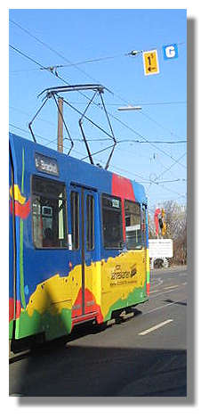 Genauso wie in Brackel befindet sich auch am Ortsausgang von Wambel eine Straßenbahnschleife. Laut Fahrplan wird diese allerdings nicht angefahren. An der Ortsgrenze zu Brackel kann man noch ein anderes technisches Detail beobachten: Hier wird der Hellweg gekreuzt von zwei Hochspannungsleitungen. Im Norden enden diese Leitungen am Umspannwerk im Gewerbegebiet Wambel-Nord, nach Süden zweigen die Leitungen ab Richtung Flughafen. Bemerkenswert ist die Aufhängung der insgesamt sechs Leiter der zwei Leitungen in derselben Ebene. Diese Konstruktion führt zu einer recht breiten Trasse und somit zu einem höheren Flächenverbrauch, so daß dem Energieversorger (hier: der RWE, früher VEW) höhere Kosten für den notwendigen Landerwerb bzw. die Einräumung von Nutzungsrechten entstehen. Da die Masten in dieser Bauweise aber erheblich niedriger sind, wird diese Verfahrensweise zuweilen aus städtebaulichen Gründen vorgeschrieben. Niedrig geführte Freileitungen sind außerdem in den Einflugschneisen von Flughäfen erforderlich. |